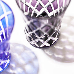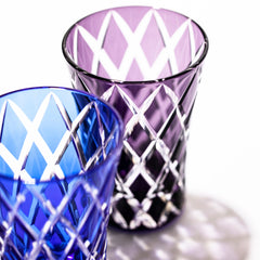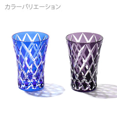 江戸切子「粋」・「雅」は 江戸の心意気を表現した「粋」の晴れやかな青、江戸の美意識を表現した「雅」の落ち着いた紫を取り入れたシリーズです。