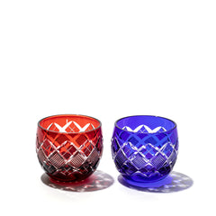 矢来魚子紋 ぐい呑ペア 赤・ルリ