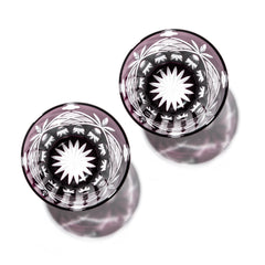四ツ葉元禄紋 天開オールドグラスペア 江戸紫