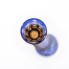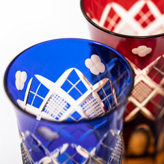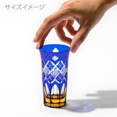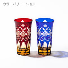 竹や丸太を組んだ形状を指し、 「物事の基礎を作る」「基盤を固める」とされる矢来と「多産・豊かさ」を表す魚子を組み合わせた 矢来魚子紋と、幸運・愛情・誠実・希望の象徴とされる「四葉のクローバー」を併せた、幸せを祈念するグラスです。