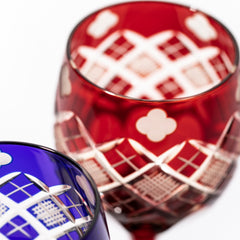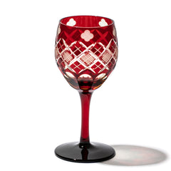 四ツ葉に矢来魚子紋 ワイングラス 琥珀赤
