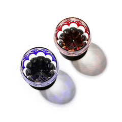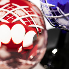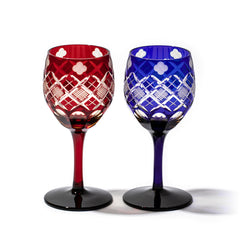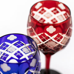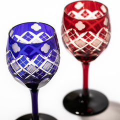 四ツ葉に矢来魚子紋 ワイングラスペア 琥珀赤・琥珀ルリ