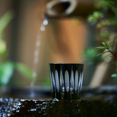 被せ硝子としては技術的にも難しく非常に珍しい「黒被せガラス」へ切子職人によるカットを施した江戸切子「黒」。